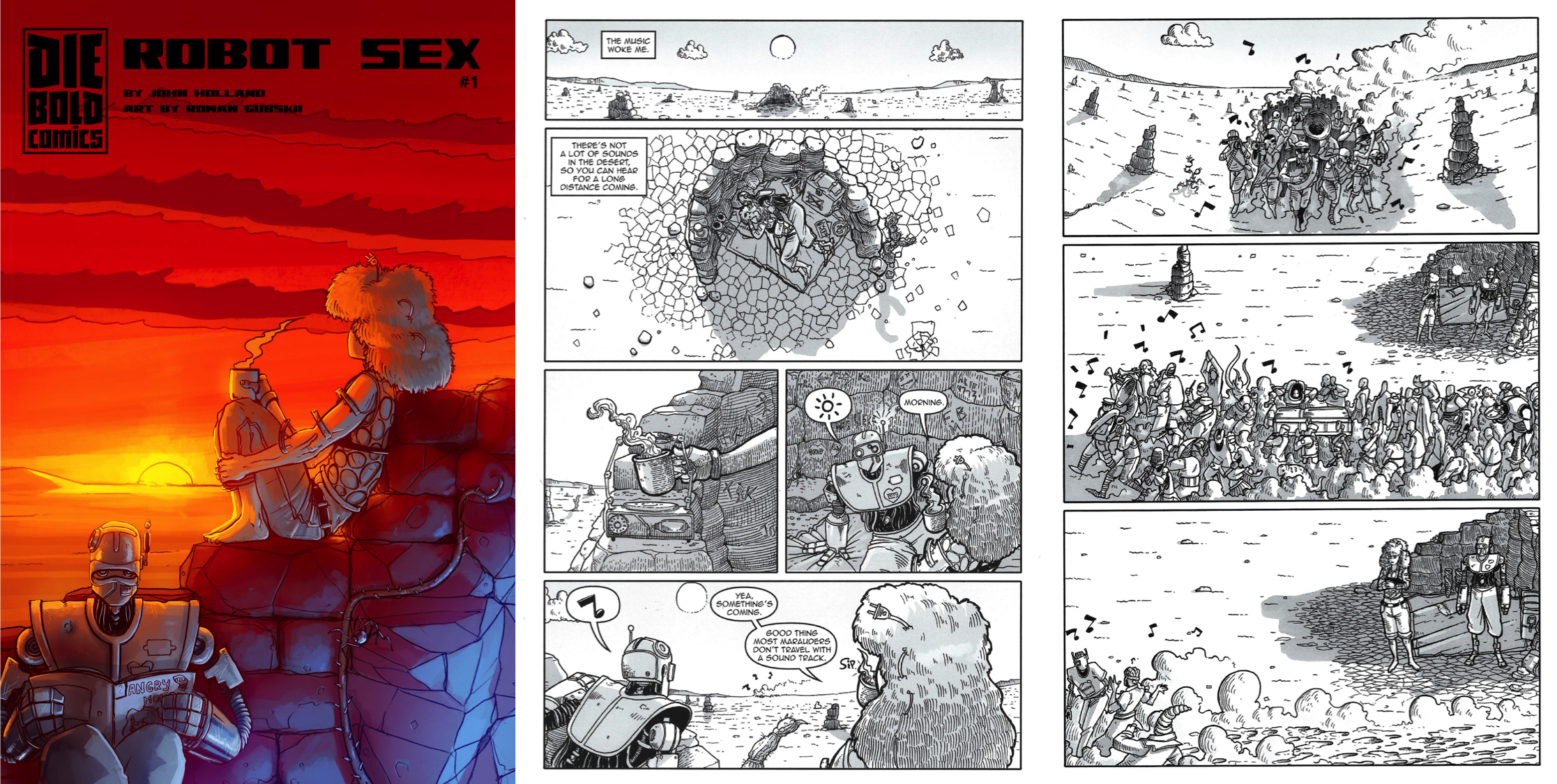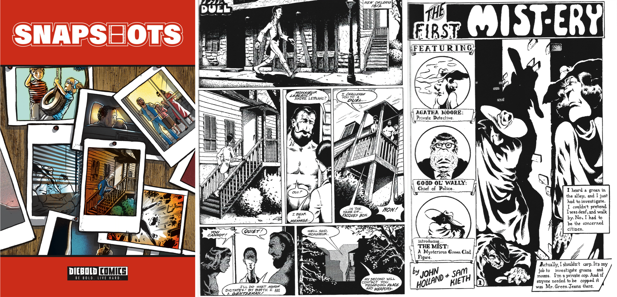 John Holland is the creator/writer/publisher of all the comics, working with such talents as Hernan Gonzales, Sam Kieth, Jorge Luis Gabotto, Larry Guidry and more. John has been published by Kitchen Sink, Innovation, Malibu, Caliber, Antarctic Press, It's Alive, and just signed a contract with Source Point Press.