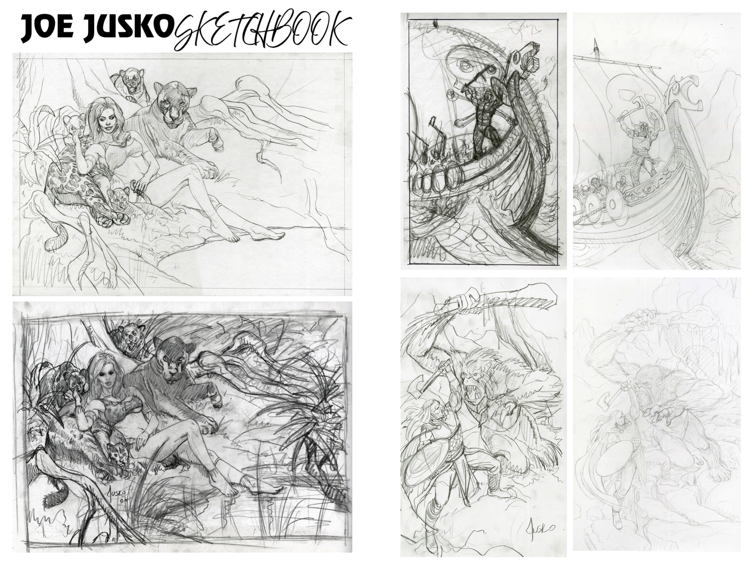 Hot off the press, here are some pages from "Grimlyn" by Brian Bolland, "Jack's Back" by Joe Pruett & Szymon Kudranski, and a Joe Jusko sketchbook, all of which will be included in this brand new volume: