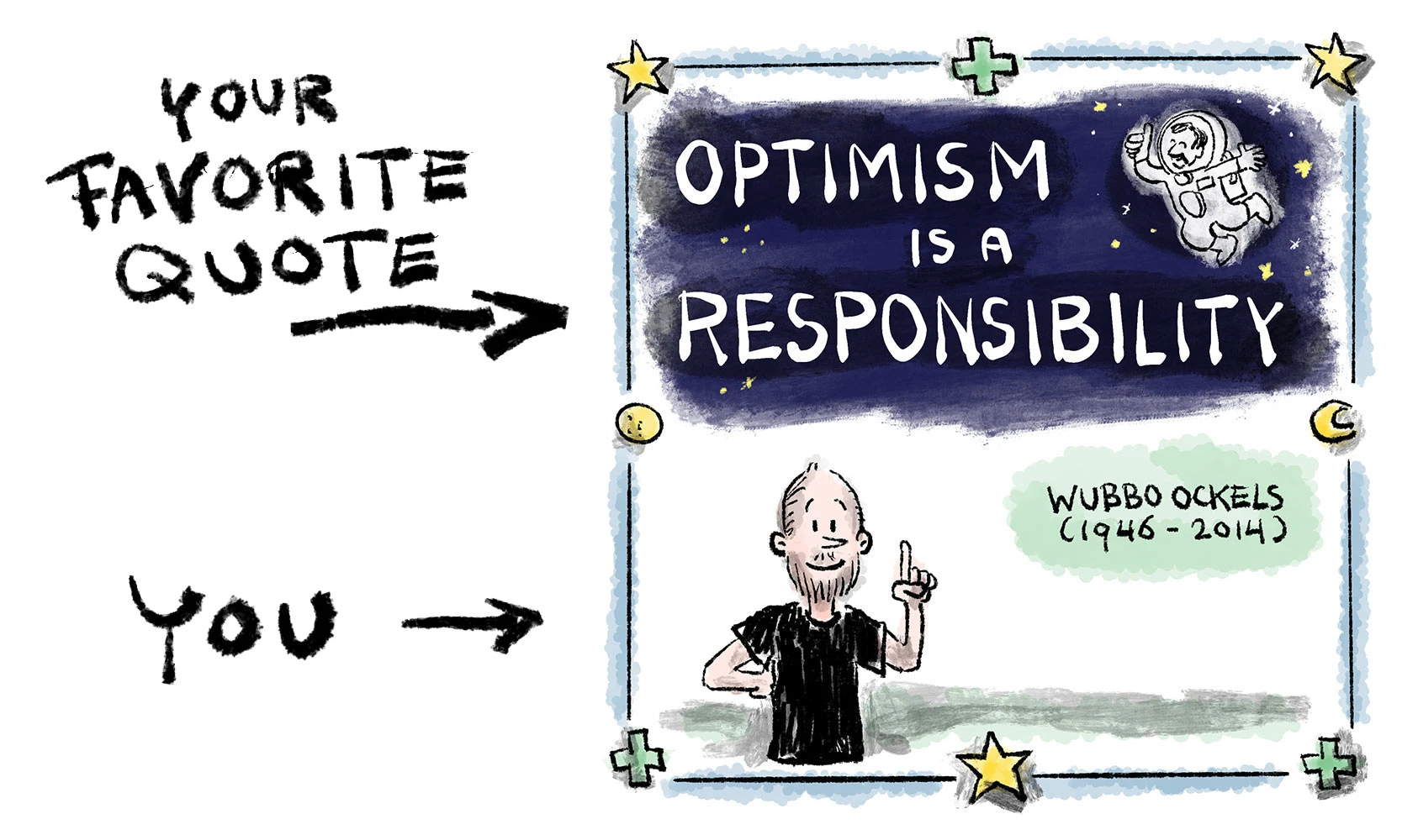 “It’s a smart and giving book that should be required reading for anyone — a sweet and amusing manual of how to navigate human beings and use your own brain while doing it. You don’t have to live life on automatic pilot and de Heer’s cartoons can show you the way!”