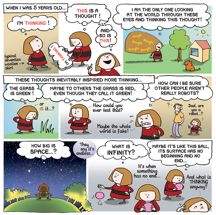 What is thinking? What is reality? What is the purpose of life? Philosophers all through the ages have throught about these questions and you can now think along with them through this fun, accessible graphic novel which lays out the fundamentals of Western philosophy for anyone who likes to think about thinking, from age 12 and up.