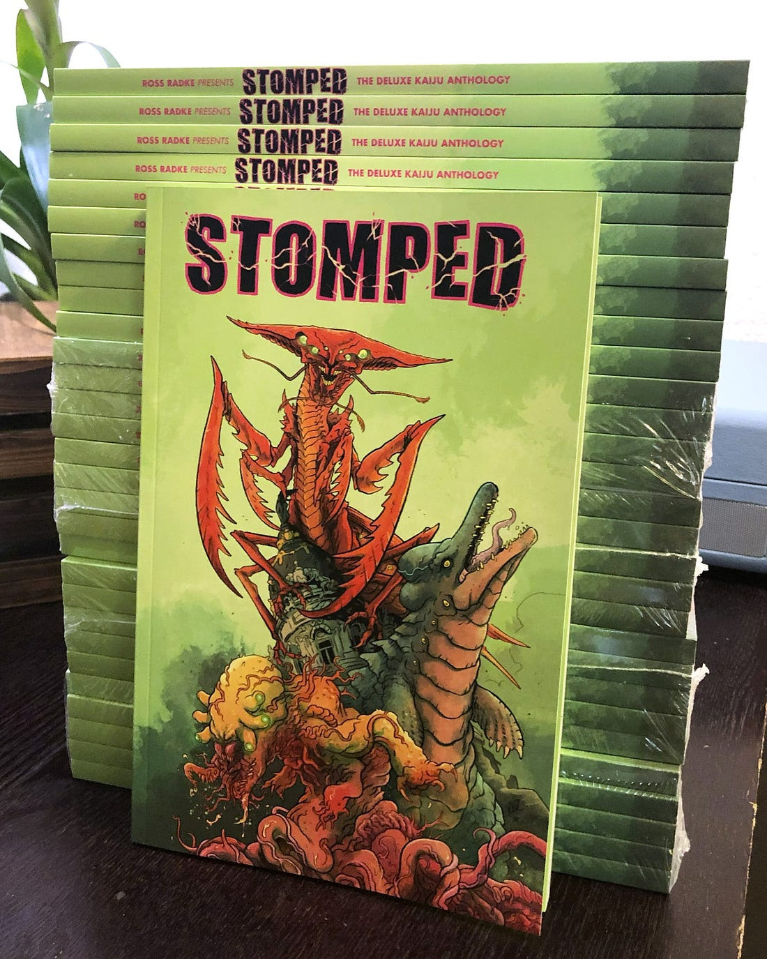 The STOMPED: DELUXE ANTHOLOGY collects every story from the self-published 4 issue miniseries, re-arranged to in-universe chronology for a more immersive reading experience, PLUS two brand new stories! Featuring art from an international team of creators, with eclectic stories ranging from sci-fi action horror to darkly comic slice of life, this is the ultimate comic anthology for all fans of giant monsters.