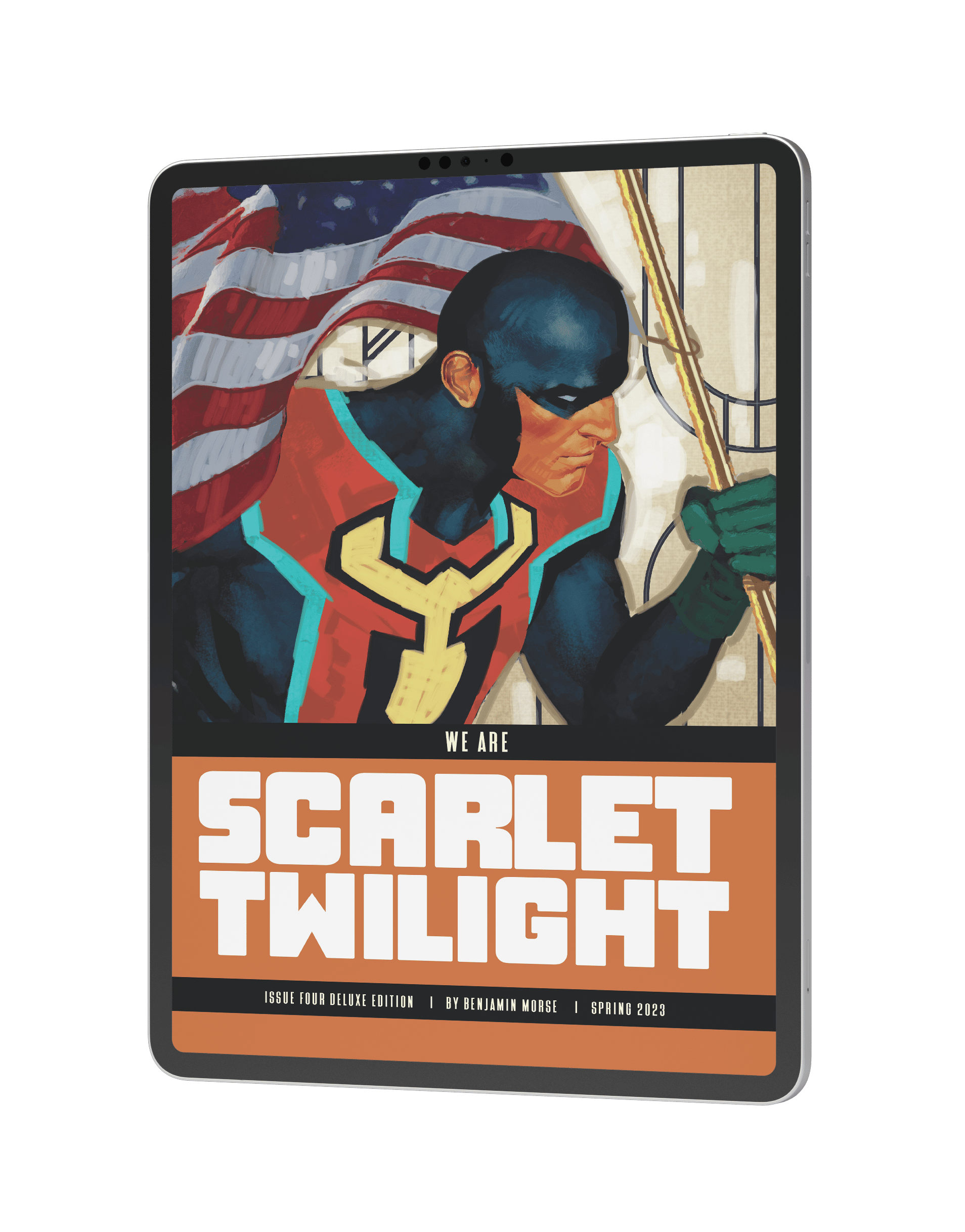 If you're a fan of Buck Rogers and Flash Gordon serials, Fleischer Bros Superman cartoons, Golden Age Comics or old school horror and crime stories, We Are Scarlet Twilight is made for you!